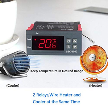Thermoregulator Relay Heating & Cooling for Freezer, Water Tanks, Refrigerator, Egg Hatching, 3D Printer, Water Heater, Fan