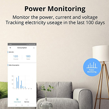 [Monitor Energy Consumption]:Keep track of real-time power, current and voltage of your appliances on App.and Measure your appliances’ power consumption for 100-day daily/monthly energy usage data and total electricity cost.