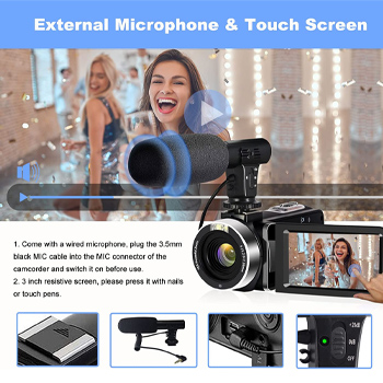 Support time-lapse photography, continuous shooting, low-speed video, PC camera function. YEEIN camcorders video camera comes with two 1500mah batteries and a battery charging station, never have to be afraid of running out of batteries, record the beautiful moments of life anytime.