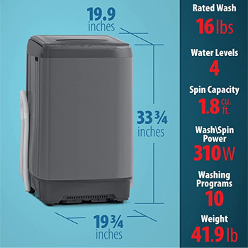 POWERFUL HIGH CAPACITY - Able to wash up to 16 pounds of laundry at a time, power through, shirts, jeans, socks, and much more without having to trek to your closest laundromat. A sturdy steel inner tub agitates and spins clothes removing odors and deeply engrained stains.