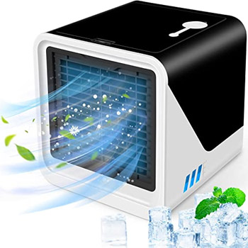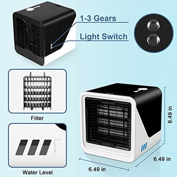 The portable air conditioner has portable design,small size.The mini air conditioner is only 7.48*7.48*7.67 inches,so itโs very convenient.The best choice for camping and you can easily carry it out.
