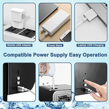 You just need to pour some ice water into the water tank, turn on the portable air conditioner, and it will cool the hot air around you in a few seconds.