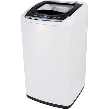 CONVENIENT DESIGN & LARGE CAPACITY - With a 9 cu. ft. tub that washes up to 6.6 lbs. of laundry in 19-52 minutes this top loading portable washer machine (17.3 x 17.7 x 31.1 in.) has an easy to use LED digital display panel & a clear top window