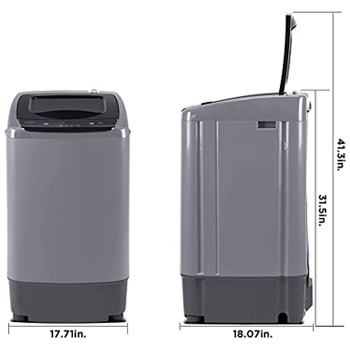 This top load compact washing machine with only 18.1 inches in width, 17.7 inches in-depth, and 31.5 inches in height, this portable washer is able to be stored easily. You can store it in your cabinet, RV, dorm, or even bathtub! Even better, it comes with wheels and handles for easy movement. It is a perfect choice for small households with limited space and minimal optimal.