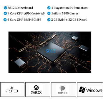 Upgraded S812 chip uses ARM Cortex A9 CPU , with more powerful functions, clearer picture quality and smoother operation. It can run many emulators and support Android, Windows, PS3, Xbox systems at the same time. you can save/load the game progress at any time.