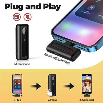 【Plug & Play Wireless Lavalier Microphone】 Say goodbye to cluttered cables, this wireless lavalier microphone simply plugs the receiver into your phone, the M9 wireless microphone automatically matches immediately and you can start recording or shooting. No APP and Bluetooth Needed, plug and play anytime, anywhere.
